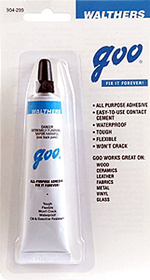 GOO is the All-Purpose adhesive that grips almost anything. It never lets go. GOO is perfect for building or repairing jobs on your layout and around the house. The easy contact action of GOO produces fast-setting joints with any material. GOO works with all types of metals including steel, brass, aluminum, copper and more. It also works on plastic, wood cardboard, china, leather, vinyl, ceramics, paper, concrete and many more surfaces. GOO is a permanent rubber base adhesive that’s shockproof-it’s as flexible as rubber. Joints won’t crack when flexed back and forth, won’t break loose when the temperature changes and won’t weaken when wet or damp. It sticks forever!