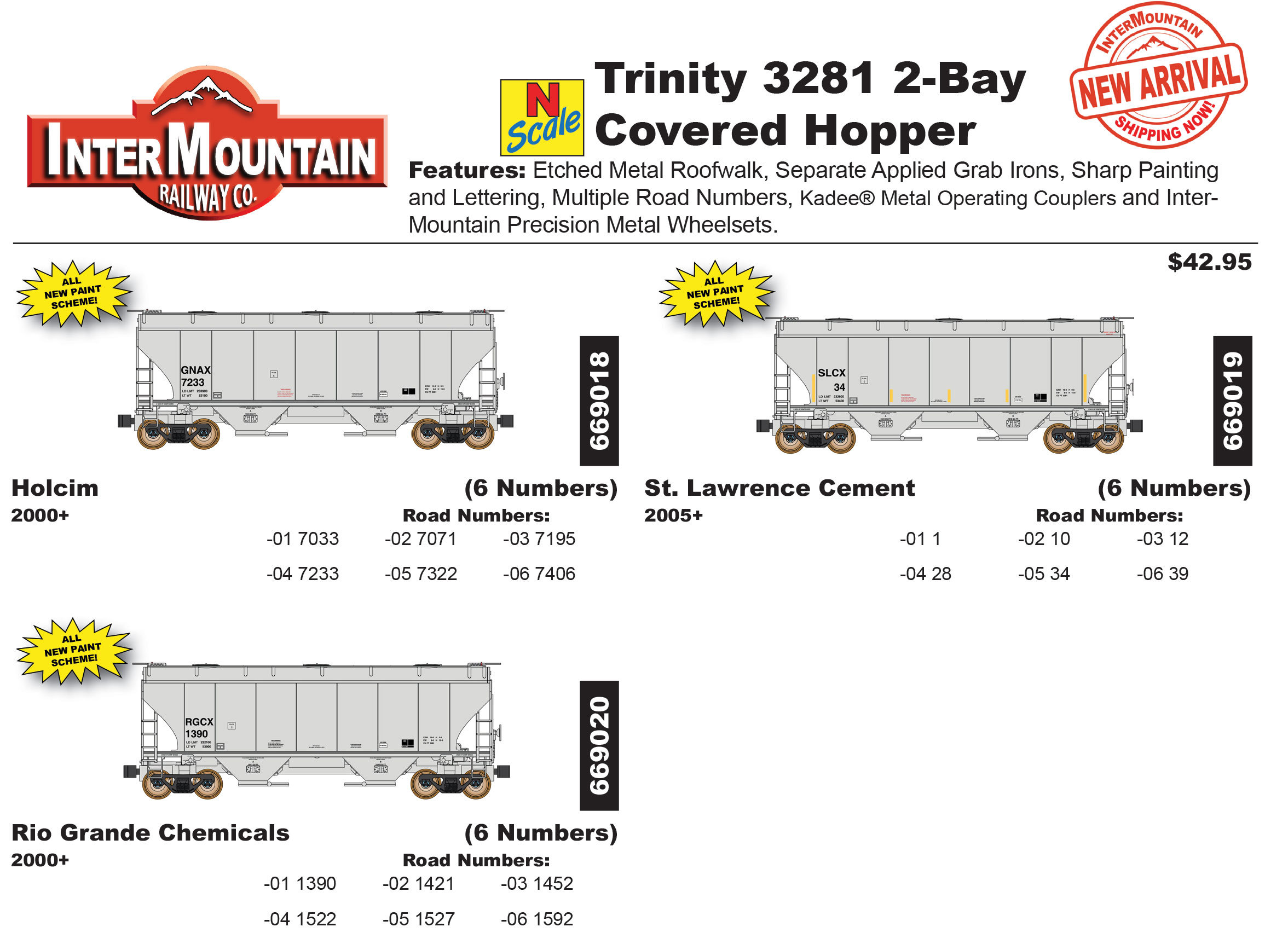 Intermountain Trinity 3281 2-Bay Covered Hoppers Orders Due March 31, 2026 Order Now Place Your Pre-Order Here * indicates required field Name:* Email:* Address:* City:* State:* Zip Code:* Phone Number:* Item Name & Manufacture:* Item Number(s) and Quantity:*